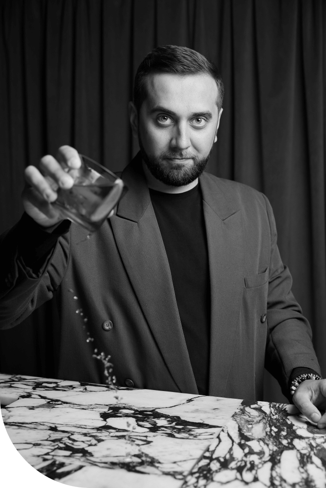 Шеф-бартендер проекта, выдающийся адепт барной культуры, тренд-сеттер и лидер мнений индустрии. За его спиной 13 лет работы за барной стойкой, проведение многочисленных мастер-классов и гастролей в других городах и странах.
